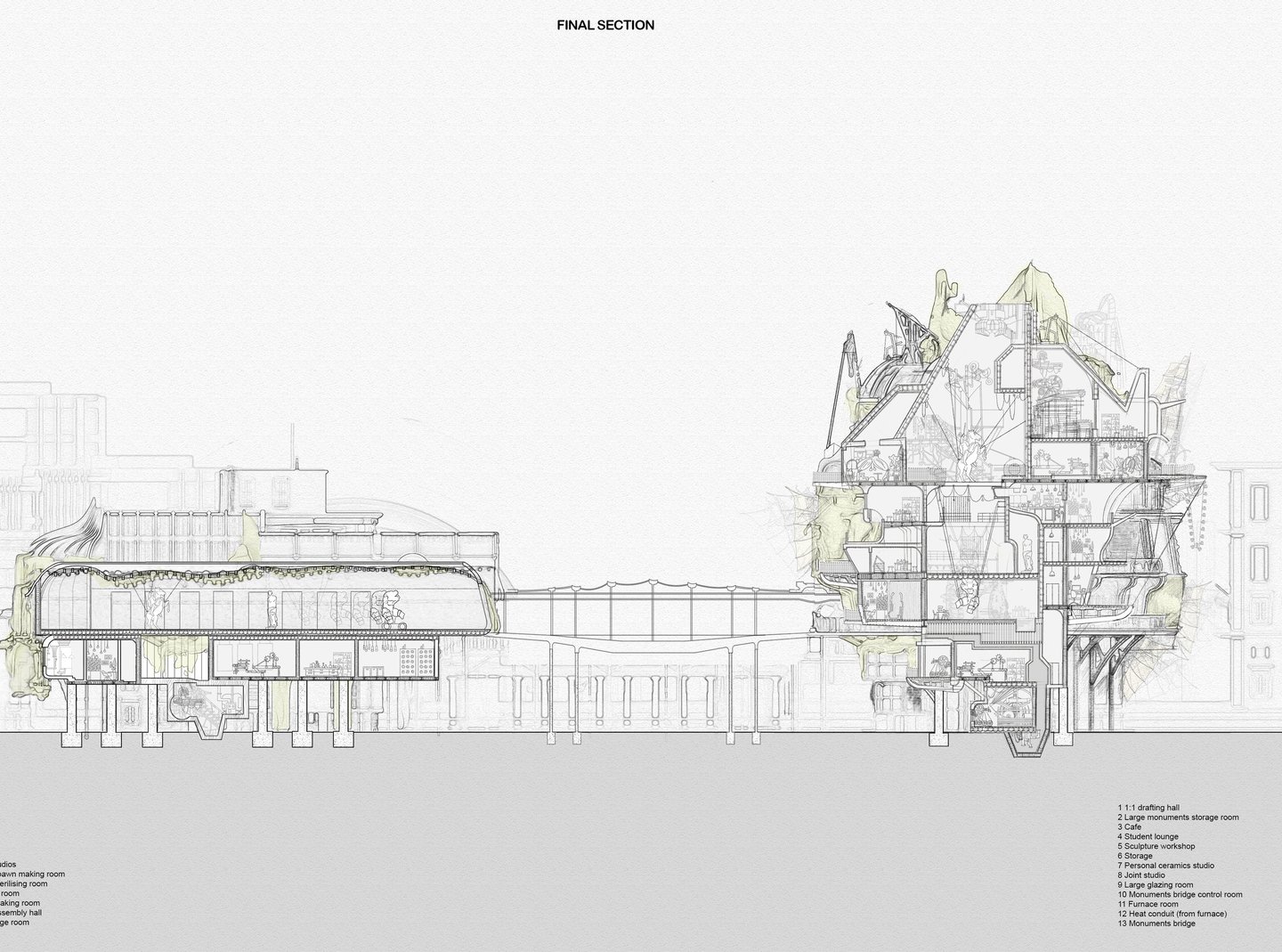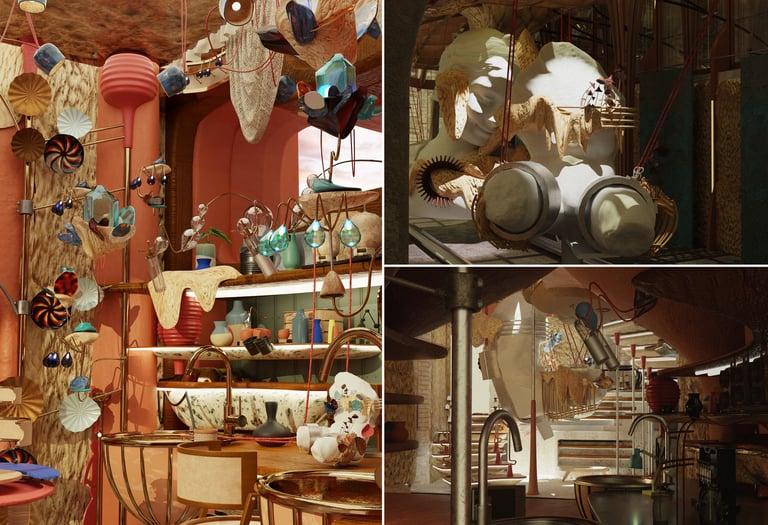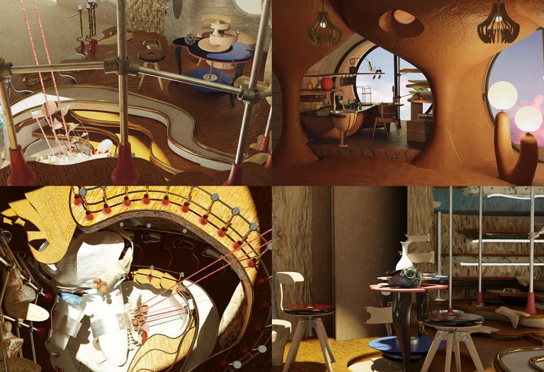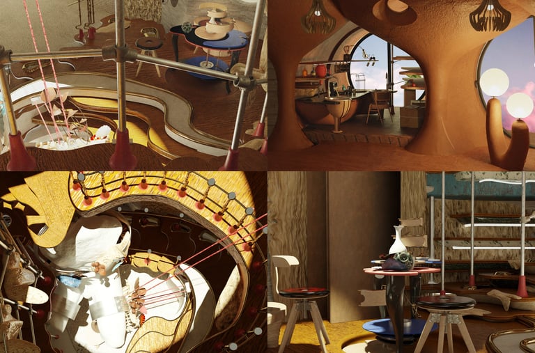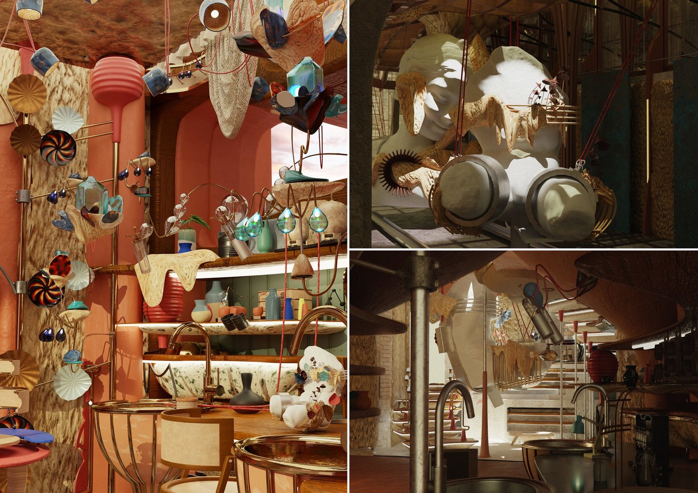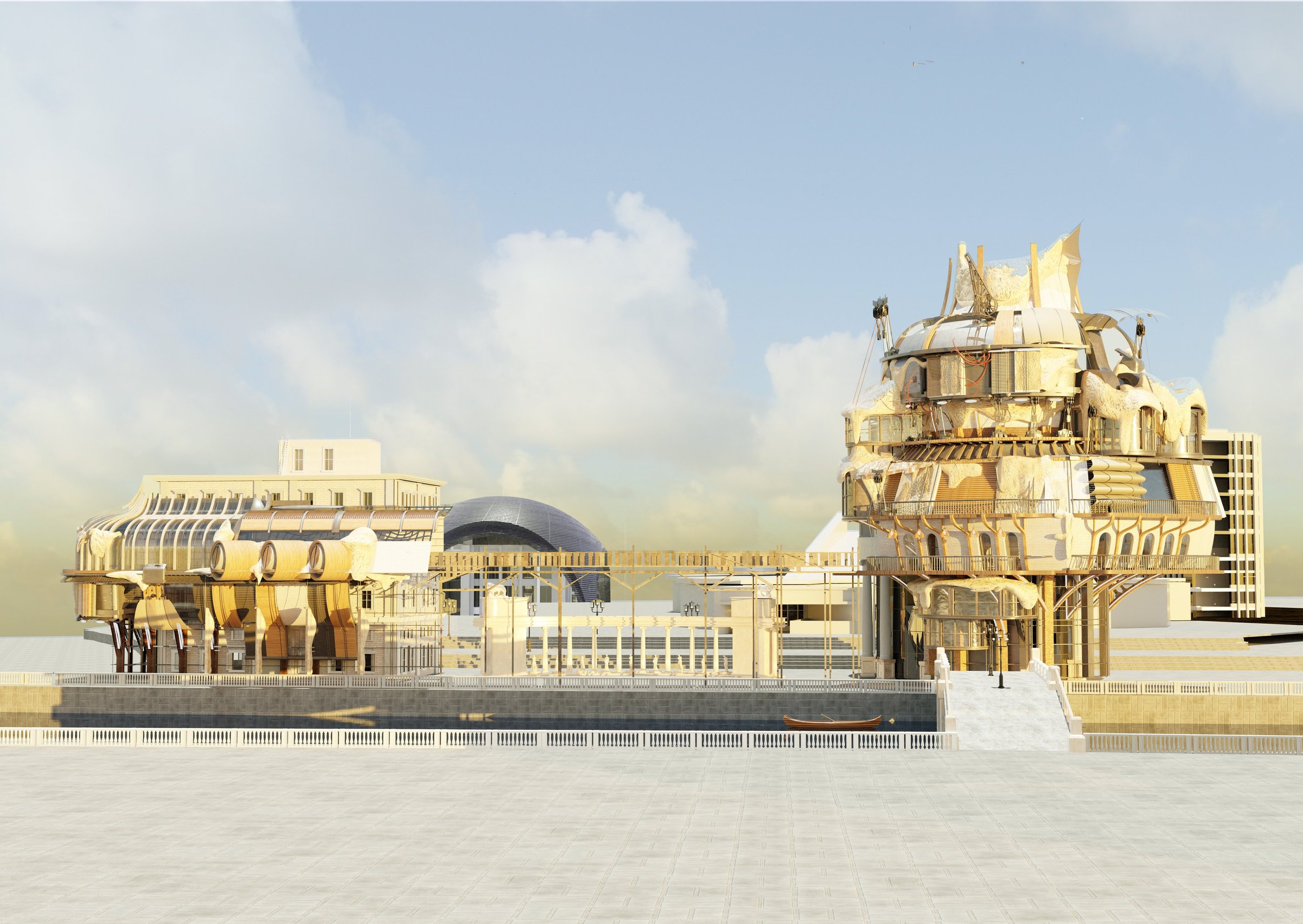My project, titled “The Skin School” is a college for the youth that promotes the creation of “new histories”. This school offers an arts and science education where students are taught to embrace a new and alternate identity for Skopje. Students here craft transformative “skins” made of mycelium, a sustainable building material, adorned with unique ceramics creations, over existing structures from the Skopje 2014 project. The school itself is designed as an inhabitable “skin” built over current elements of the project. The college will be an evolving space where students are actively involved in its ongoing development and expansion.
