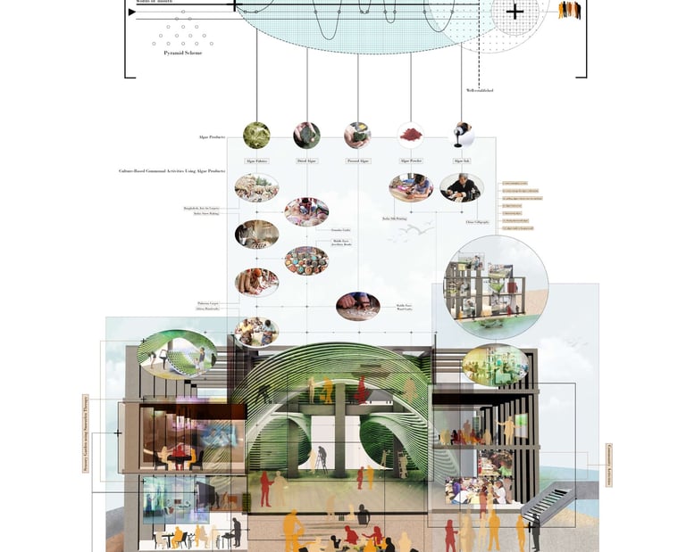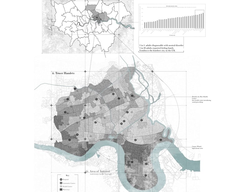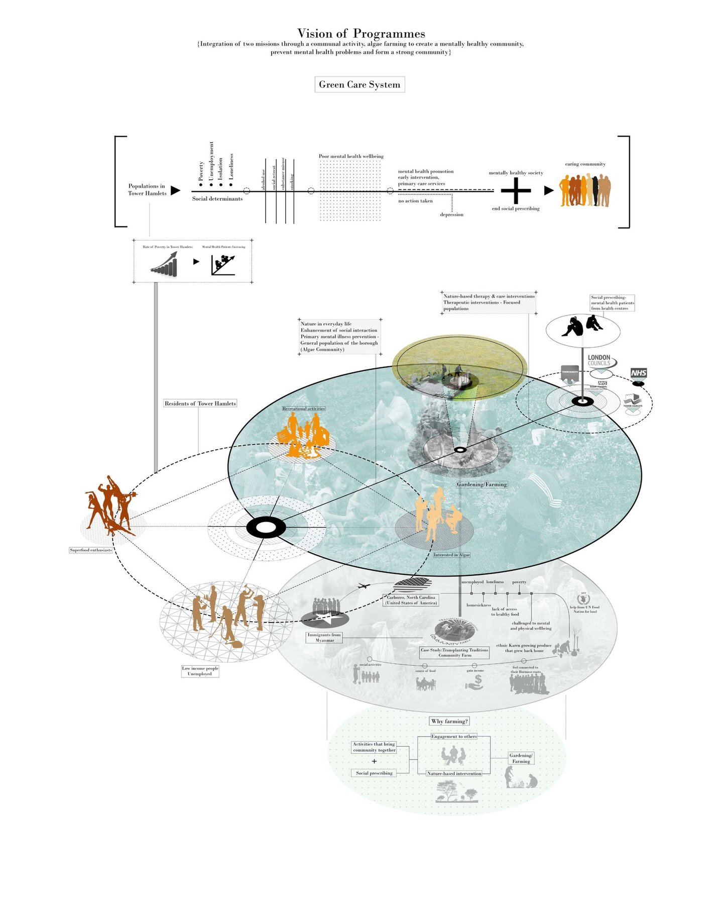 Algae Paradise, an algaculture farm in the east of Bromley-By-Bow, London. It conducts a social prescribing programme for mental health patients that disguises itself as an algae hub. This hub not only boosts the economy of this borough, but allows all nearby residents to participate in farming without discrimination against people with mental illness.